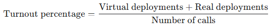 Finally, we divide the number of actual and virtual responses by the number of total incidents to determine the turnout percentage (see below). The higher the turnout percentage, the lower your priority for the next incident.
