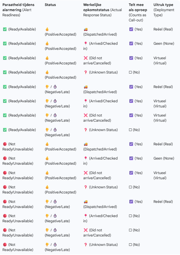 - Not available but confirmed attendance at the time of alerting (lowest priority)