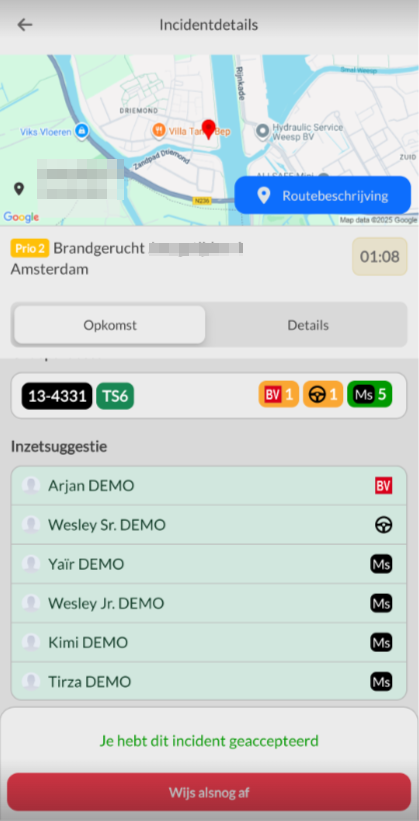 In the FireServiceRota v4 app, it is possible to display the deployment proposal on the incident detail page. Screenshot is in Dutch, but page contents are the same in English.