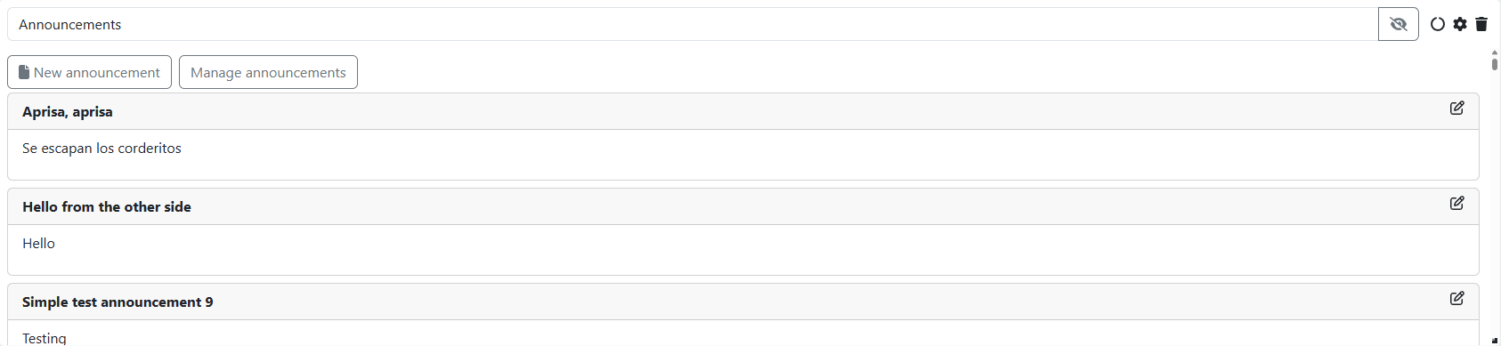 The Announcements widget can be used to display and/or create announcements within a station. The widget displays both text and attached features such as a poll and/or images.