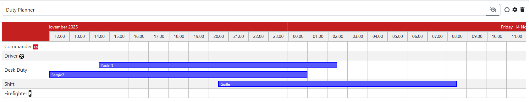 This widget gives you an overview of who is fulfilling a specific on-call role within the station at any given time. This widget mirrors the service planner's display outside the dashboard.