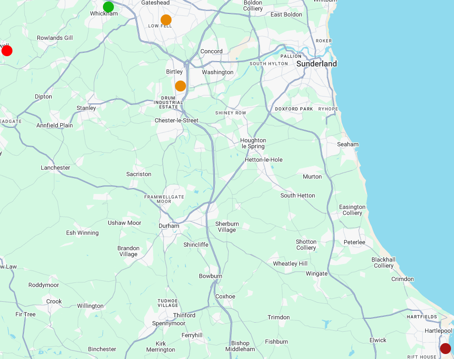This widget displays a map of all stations in the region, including color-coded crewing alerts. This widget can only be used for regional dashboards.