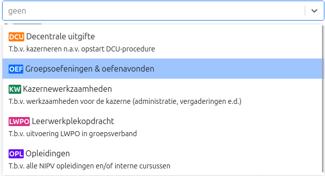 Stap 4.) Kies, indien van toepassing, een type en/of beschikbaarheidscode die aan het aanwezigheidsrapport moet worden toegekend. Gedurende de duur van het aanwezigheidsrapport zal voor iedere aanwezige in het rooster de beschikbaarheidscode worden overgenomen.