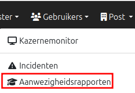Stap 1.) Ga via het menu 'Post' naar de pagina 'Aanwezigheidsrapporten'.