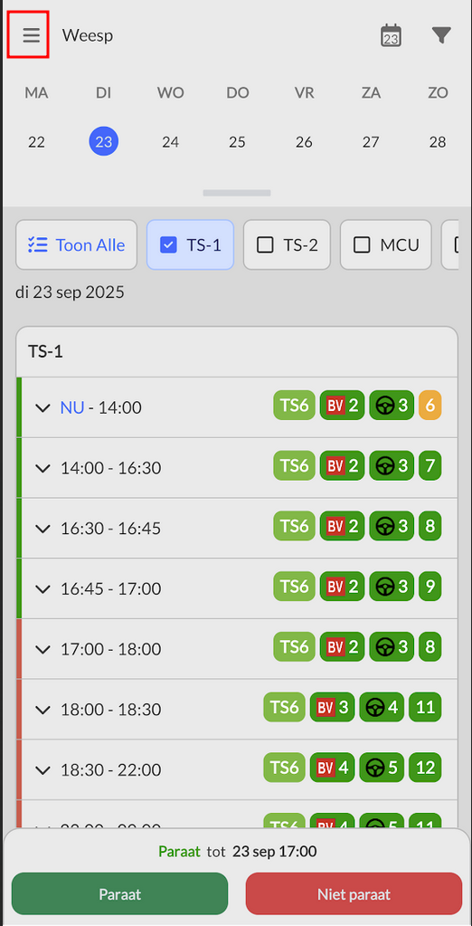 Stap 1.) Open het menu van de app door linksboven op de horizontale streepjes te drukken.