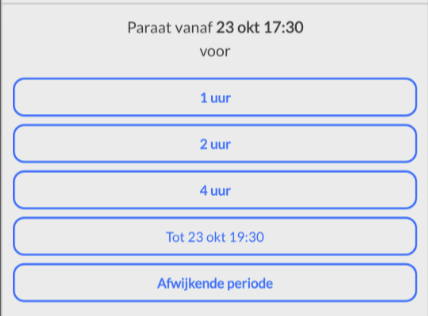Druk onderin op de knop 'Paraat' of 'Niet paraat'.