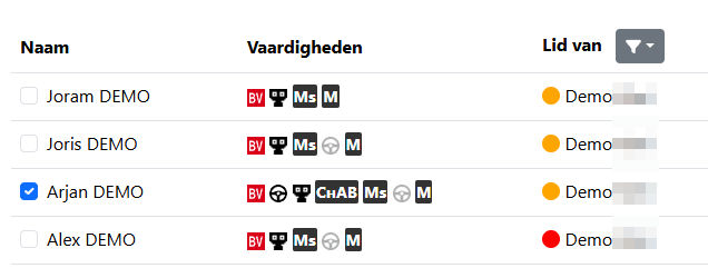 Stap 9.) Vink in de kandidatenlijst de gebruiker(s) aan waar je een ruiling mee wilt uitvoeren.