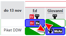 Stap 2.) Druk in het rooster op de dienst die je wilt ruilen.