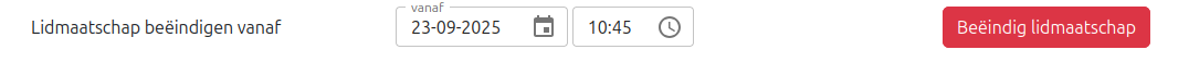 Stap 3.) Druk onderaan op de knop 'Beëindig lidmaatschap'. Selecteer eventueel een datum en tijd vanaf wanneer deze wijziging van kracht moet worden.