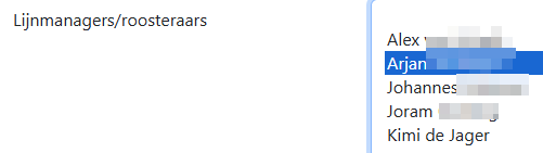 Stap 2.) Kies een lijnmanager(s) en druk op de knop 'Opslaan' om de wijzigingen op te slaan.