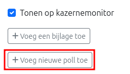 - Druk op de knop ´Voeg nieuwe poll toe' om een poll aan de mededeling toe te voegen.