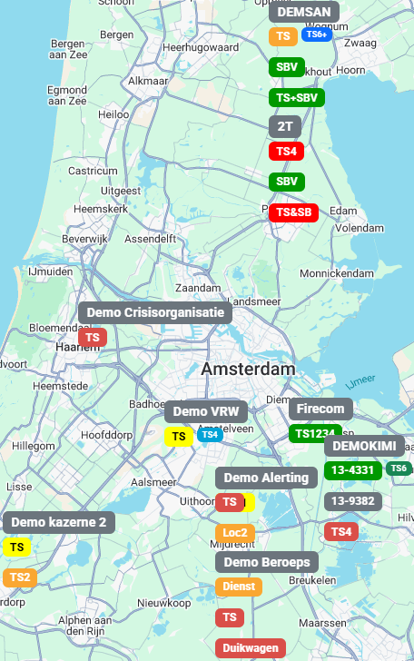 Via deze widget kan er een kaart worden getoond met daarop alle kazernes van de regio, inclusief bezettingswaarschuwingen op kleur. Deze widget kan enkel worden gebruikt voor dashboards op regionaal niveau.