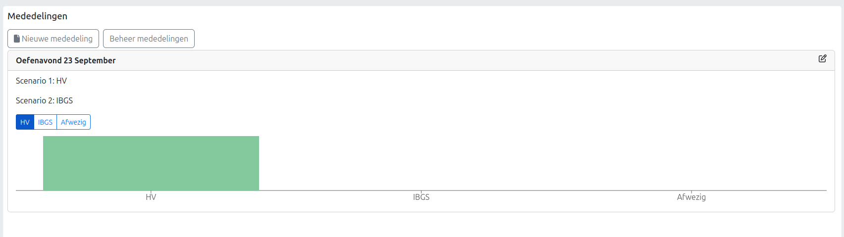 De mededelingen widget kan gebruikt worden om de mededelingen binnen een post te tonen en/of aan te maken. De widget toont zowel de tekst als de bijgevoegde features zoals een poll en/of afbeeldingen.